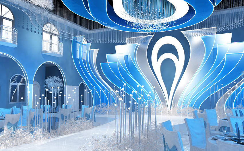 天镇居易蓝色调婚礼堂效果展示
